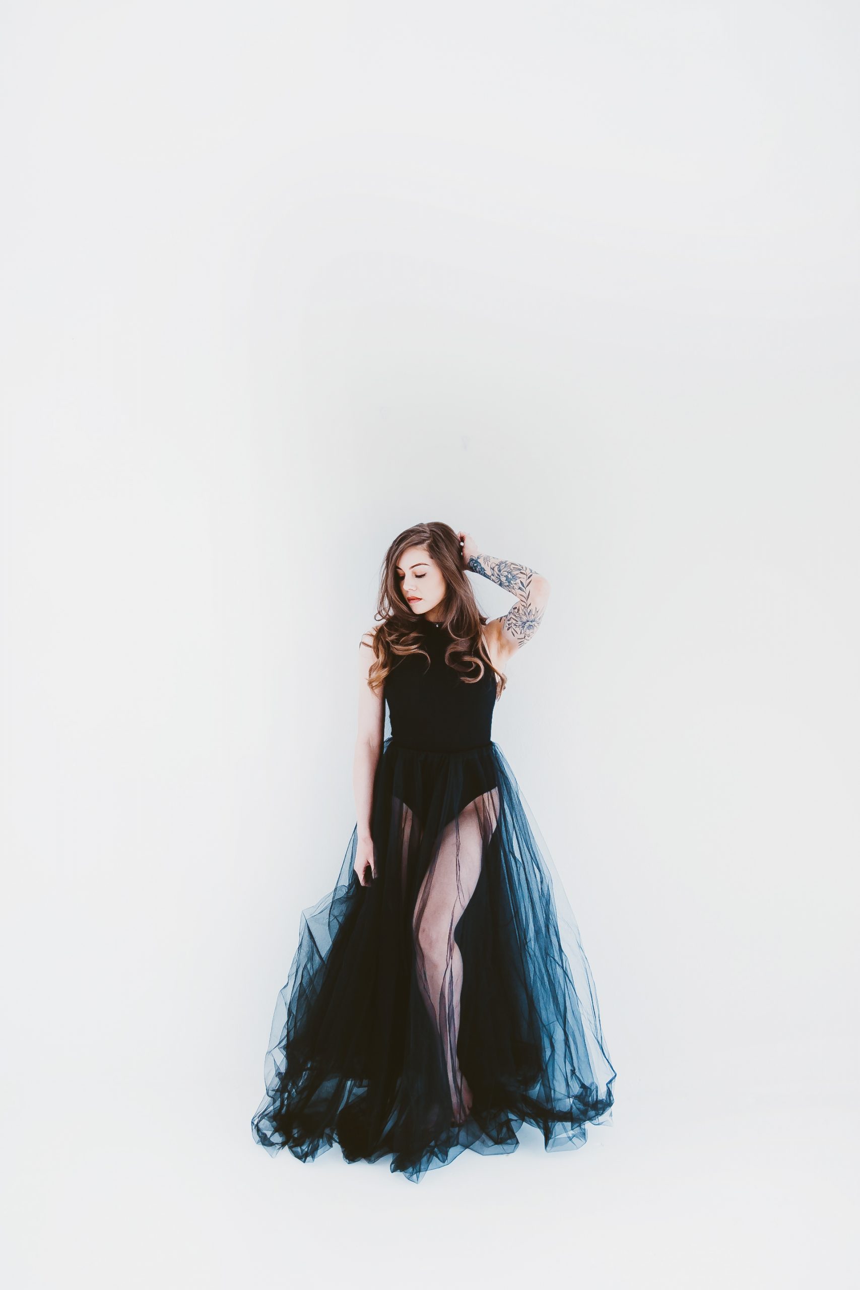 Sheer full length gathered Tulle skirt with an elasticated waist for a custom fit